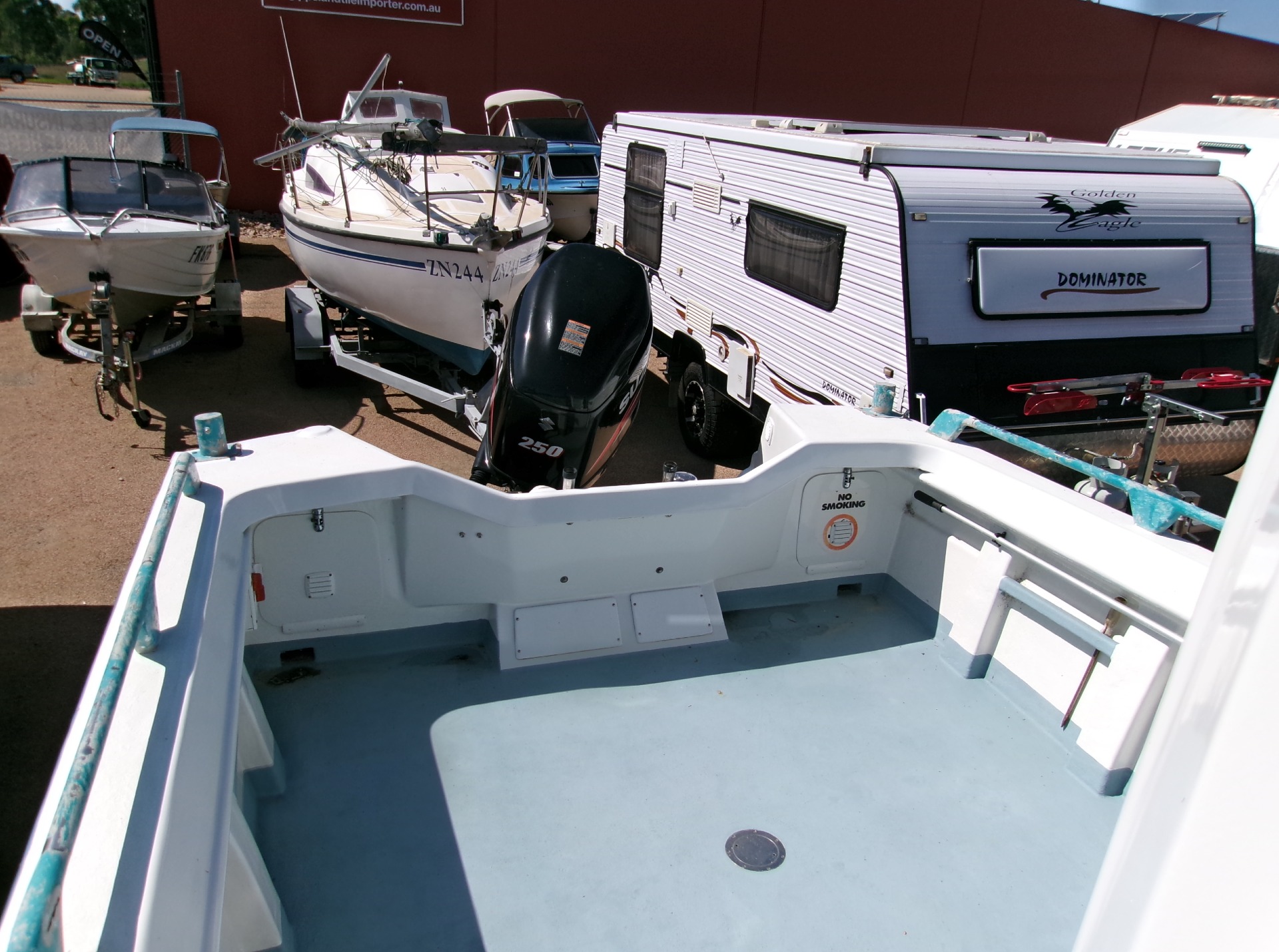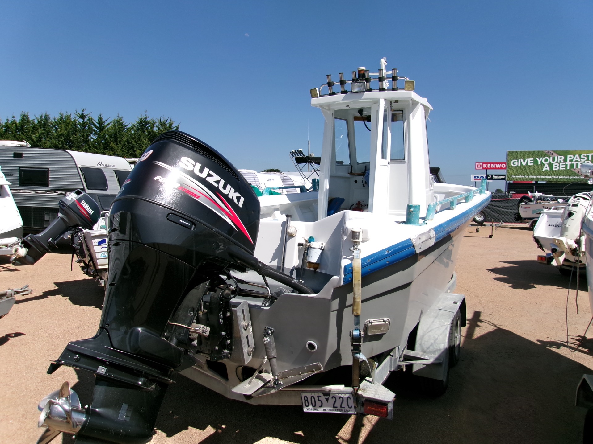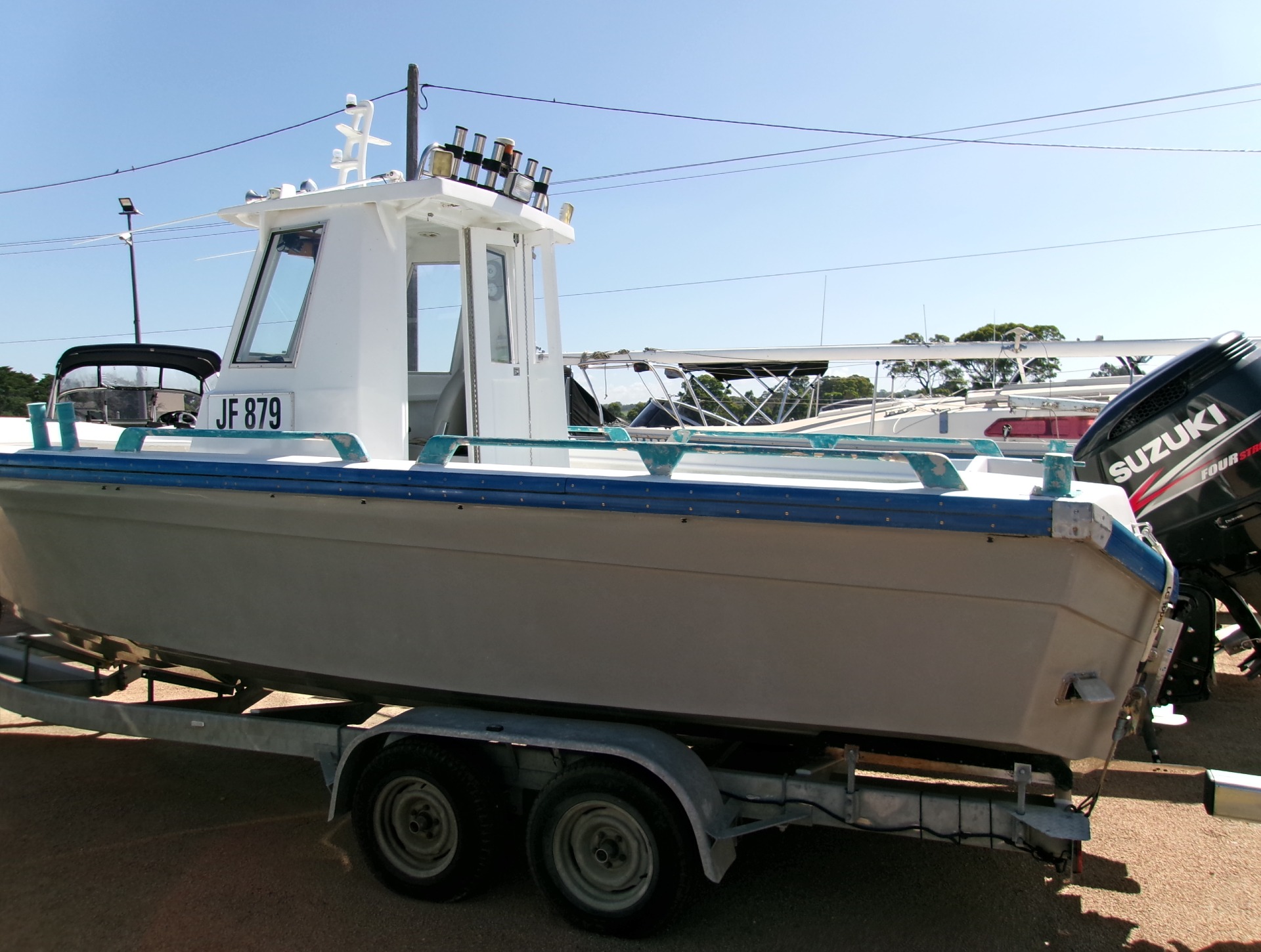 Powered by a 2015 Suzuki 250hp outboard, the boat delivers strong performance and reliability. The package sits on a tandem galvanized trailer (2004), allowing for easy transport and launching.